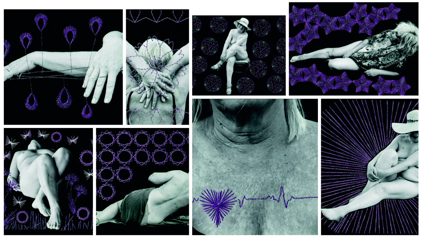 Rosa Cattana: Artista y activista feminista argentina. Es creadora de Viejas Lindas, un proyecto artístico que cuestiona los mandatos de belleza hegemónicos y visibiliza los cuerpos de mujeres que envejecen. A través de fotografías intervenidas con bordado —en hilos violetas y plateados— transforma el “fondo oscuro” culturalmente asignado a la vejez en una propuesta estética, política y luminosa. Seguila en rosacattana.com.ar