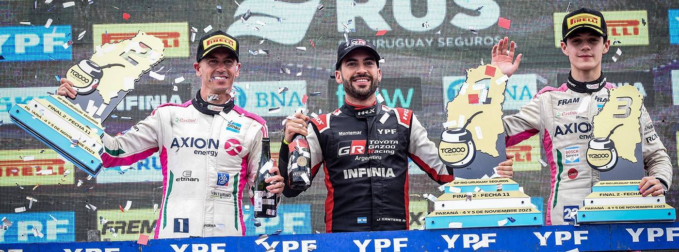 En la segunda competencia, en tanto, Santero (Toyota) consiguió la victoria, tras 18 giros, con un tiempo acumulado de 26m. 42s. 186/1000, para lograr los puntos necesarios para convertirse en el escolta del campeón Leonel Pernía (Renault) en el torneo.