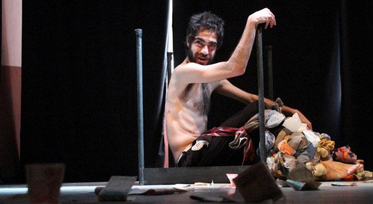 “En el patio de una casa vieja, en un galpón, en un baldío, él busca algo pero… ¿qué? Es un espectáculo horrible y penoso de ver, cuando agita su sucia melena y te mira insolentemente. Se presenta medio desnudo, con una capa raída, una bolsita colgante y, entre sus manos, una maza hecha de madera de peral silvestre. Va descalzo, no se lava y carece de oficio y beneficio. No quiere saber nada de su hacienda ni de nosotros, sus padres, sino que, por el contrario, nos reniega, pues afirma que todas las cosas son obra de la naturaleza y que la unión de elementos es la causa de la generación y no los progenitores. Evidentemente, desprecia el dinero y aborrece el cultivo de la tierra. No tiene sentido de la vergüenza y el pudor se ha borrado de su rostro. (…)”, reza la promoción del espectáculo.
