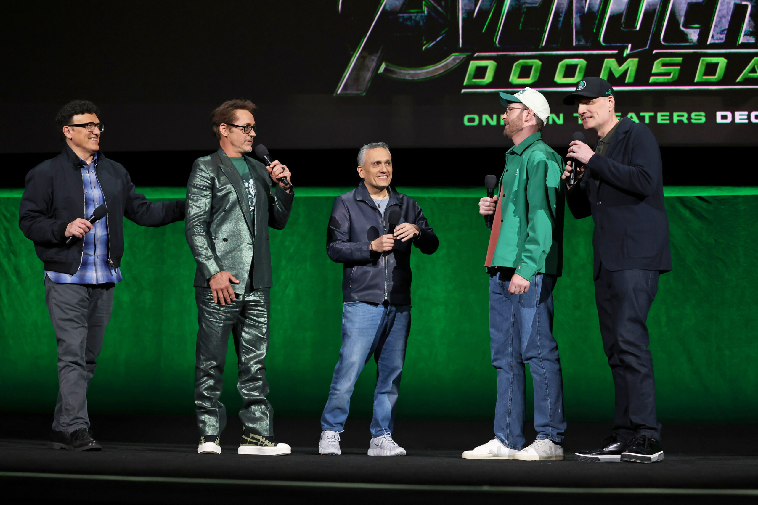 Anthony Russo, Robert Downey Jr., Joe Russo, Chris Evans y Kevin Feige, presidente de Marvel Studios, hablaron durante la presentación de Walt Disney Studios en la CinemaCon 2026, el 16 de abril de 2026 en Las Vegas, Nevada. (Foto de Jesse Grant).