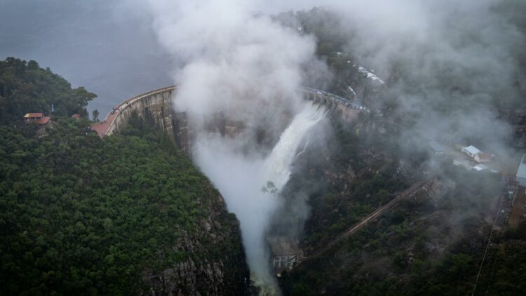 Las imágenes difundidas por el Gobierno provincial muestran el volumen alcanzado por los embalses y el funcionamiento de válvulas y vertederos en distintos puntos del territorio.