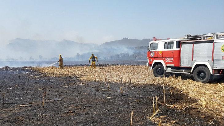 Luego del trágico incendio el cuerpo de Bomberos Voluntarios de Villa María tuvo que acudir, en la madrugada de este lunes, a sofocar otro foco ígneo de proporciones.
