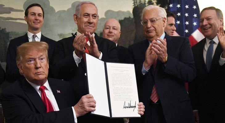 El vicepresidente de EEUU, Mike Pence, había adelantado un rato antes la resolución de Trump, que había anunciado la semana pasada. El gesto ubica a EEUU en el lugar de primer país en reconocer la soberanía de Israel sobre un área que arrebató a Siria en la Guerra de los Seis Días (1967) y que se anexionó en 1981.
