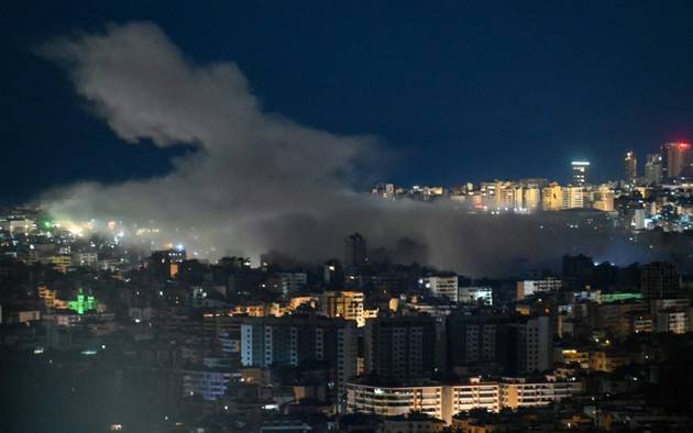 El humo se eleva desde el lugar del ataque aéreo israelí que tuvo como blanco un área en el barrio sur de Beirut.