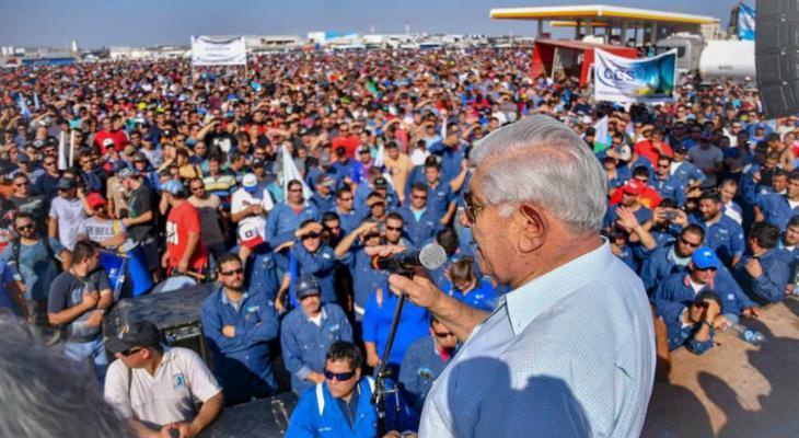 Pereyra, senador nacional por el Movimiento Popular Neuquino (MPN), convocó a unos 20.000 trabajadores a una gran asamblea (foto) luego que las empresas perjudicadas como Tecpetrol (del Grupo Techint), YPF y Pampa Energía, anunciaran la intención de replantear su programa de inversiones e incluso emprender juicios contra el Estado.