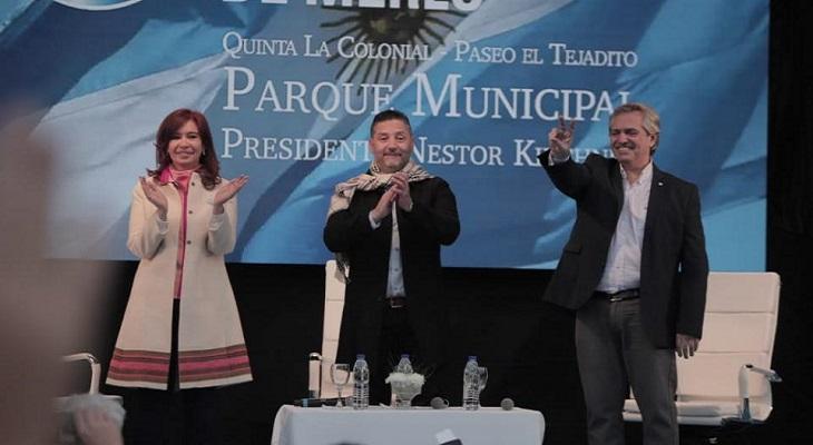 Alberto Fernández y Cristina Fernández de Kirchner encabezaron hoy su primer acto como compañeros de fórmula en Merlo, donde se inauguró el Parque Municipal Presidente Néstor Kirchner, un homenaje a 16 años de la asunción del fallecido ex presidente.
