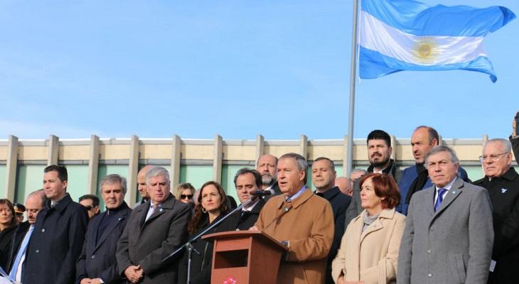 Tras entonar las estrofas del Himno Nacional Argentino, el Gobernador les tomó promesa a la Bandera a más de quinientos alumnos de cuarto grado de 12 establecimientos del sur de la provincia; posteriormente, y luego del requerimiento oficial, efectuaron el juramento de lealtad al Pabellón Nacional aspirantes y cadetes de primer año de la Escuela de Policía Libertador General San Martín, cadetes de segundo año de la Escuela Comodoro Salustiano Pérez Estévez del Servicio Penitenciario de Córdoba, y Fuerza Aérea Argentina.