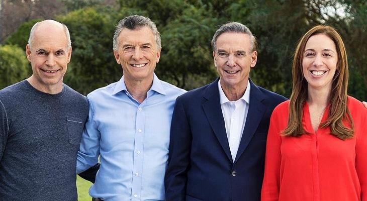 El presidente de la Nación, y candidato a la reelección de Juntos por el Cambio, Mauricio Macri, difundió ayer una imagen junto a la gobernadora bonaerense, María Eugenia Vidal y al jefe de Gobierno porteño, Horacio Rodríguez Larreta, y pidió a los argentinos que voten la boleta completa. Los alicaídos números del jefe de Estado en cuanto a imagen positiva e intención de voto lo obligaron a pegar su candidatura a la de Vidal y Larreta, cuyas estadísticas son mejores.