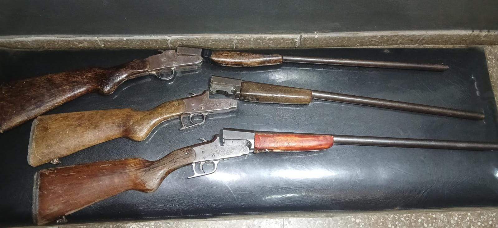Al inspeccionar los vehículos, los agentes constataron que los ocupantes llevaban consigo tres armas largas, tipo escopetas, y un total de 87 cartuchos de diferentes calibres.