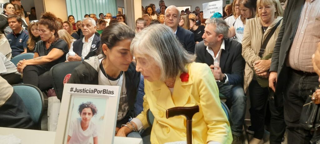 La sentencia se leyó sin la presencia de miembros del gabinete provincial y Soledad Laciar, madre de Blas, escuchó las condenas acompañada de su hijo Juan. Detrás de ellos se encontraba Sonia Torres, figura de la lucha por los derechos humanos y titular de Abuelas de Plaza de Mayo Córdoba.