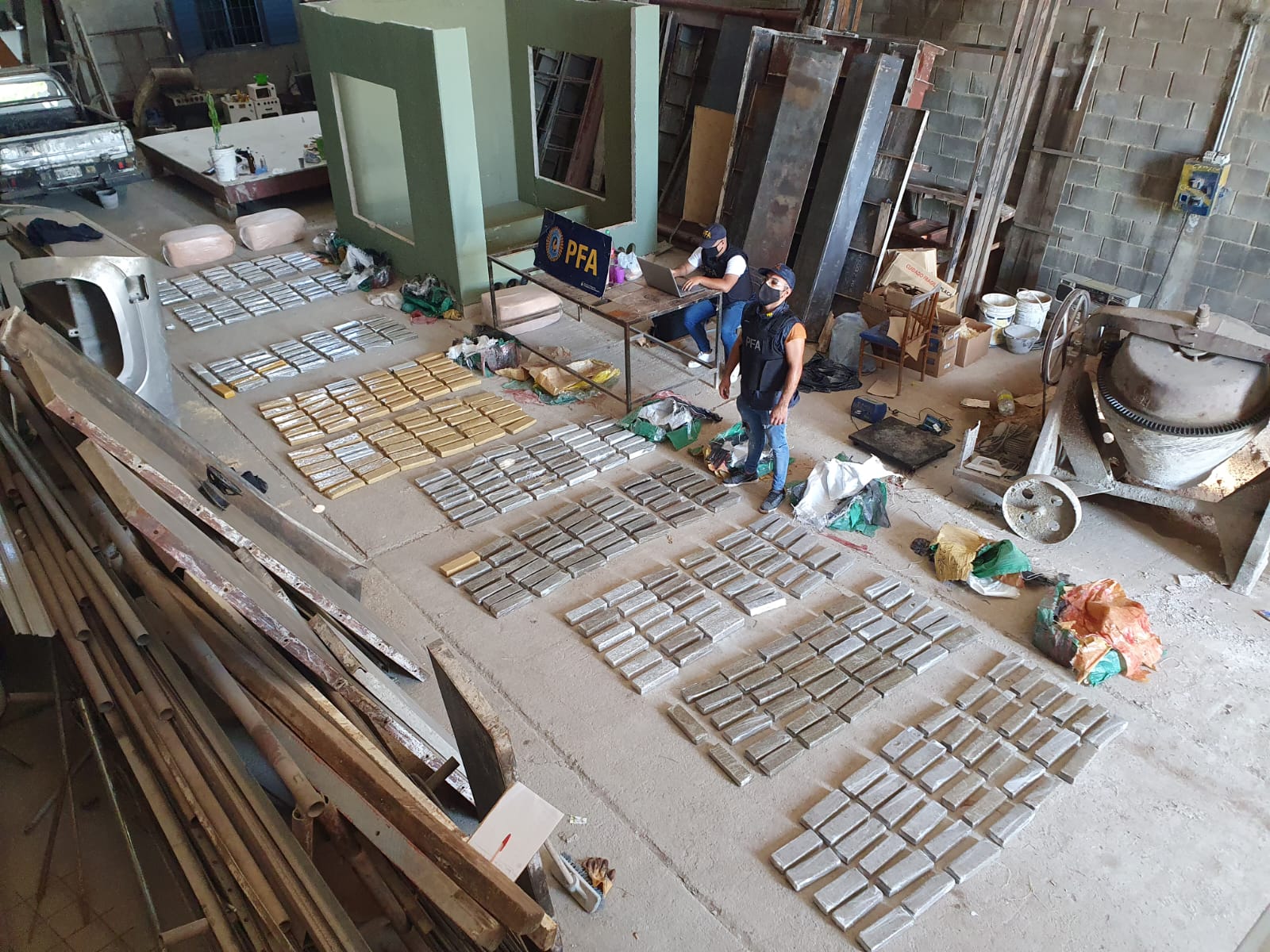 A raíz de ello, los federales montaron un operativo sobre la Ruta Nacional 9 que permitió interceptar a la altura del km 693 dos camionetas, que apoyadas por cuatro autos, realizaban las maniobras de descarga e inmediata recarga para la distribución de la droga, utilizando como base de operaciones un galpón ubicado en el Barrio 25 de Mayo que estaba enmascarado bajo la fachada de una empresa metalúrgica.