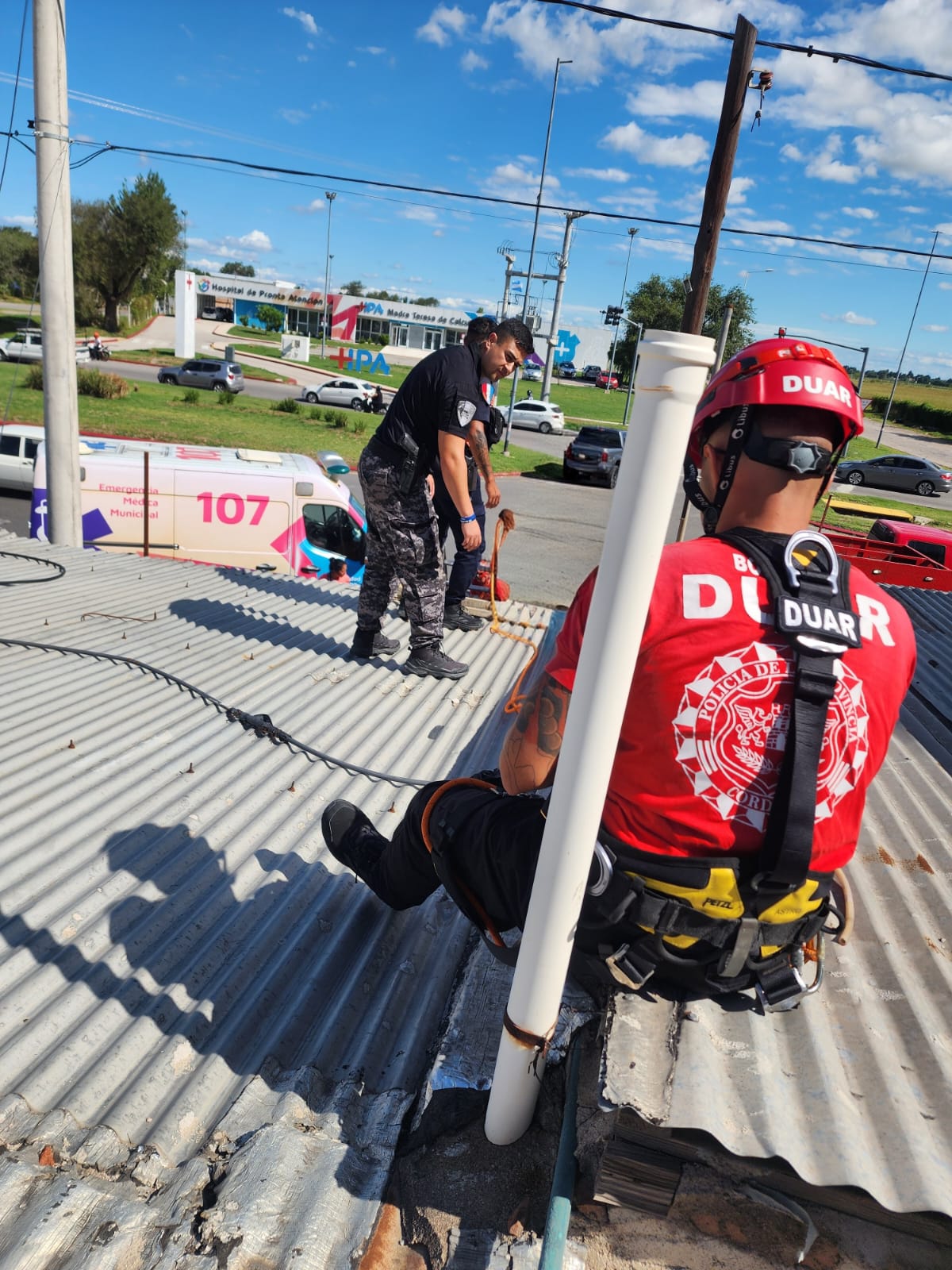 La situación requirió la intervención inmediata del Departamento de Unidades de Alto Riesgo (Duar), cuyos efectivos desplegaron un operativo de rescate especializado. Mediante técnicas y equipamiento específico, lograron asegurar al trabajador y efectuar un descenso controlado hasta la superficie para su posterior asistencia.