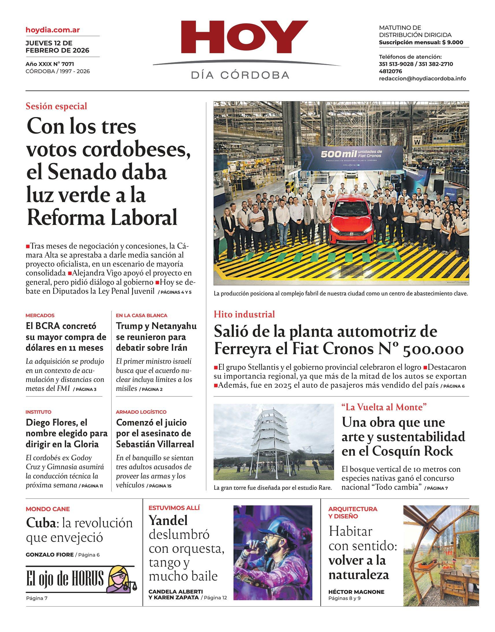 Esta es la Tapa del Día jueves 12 de febrero del 2026 de nuestro Diario en su edición impresa.
