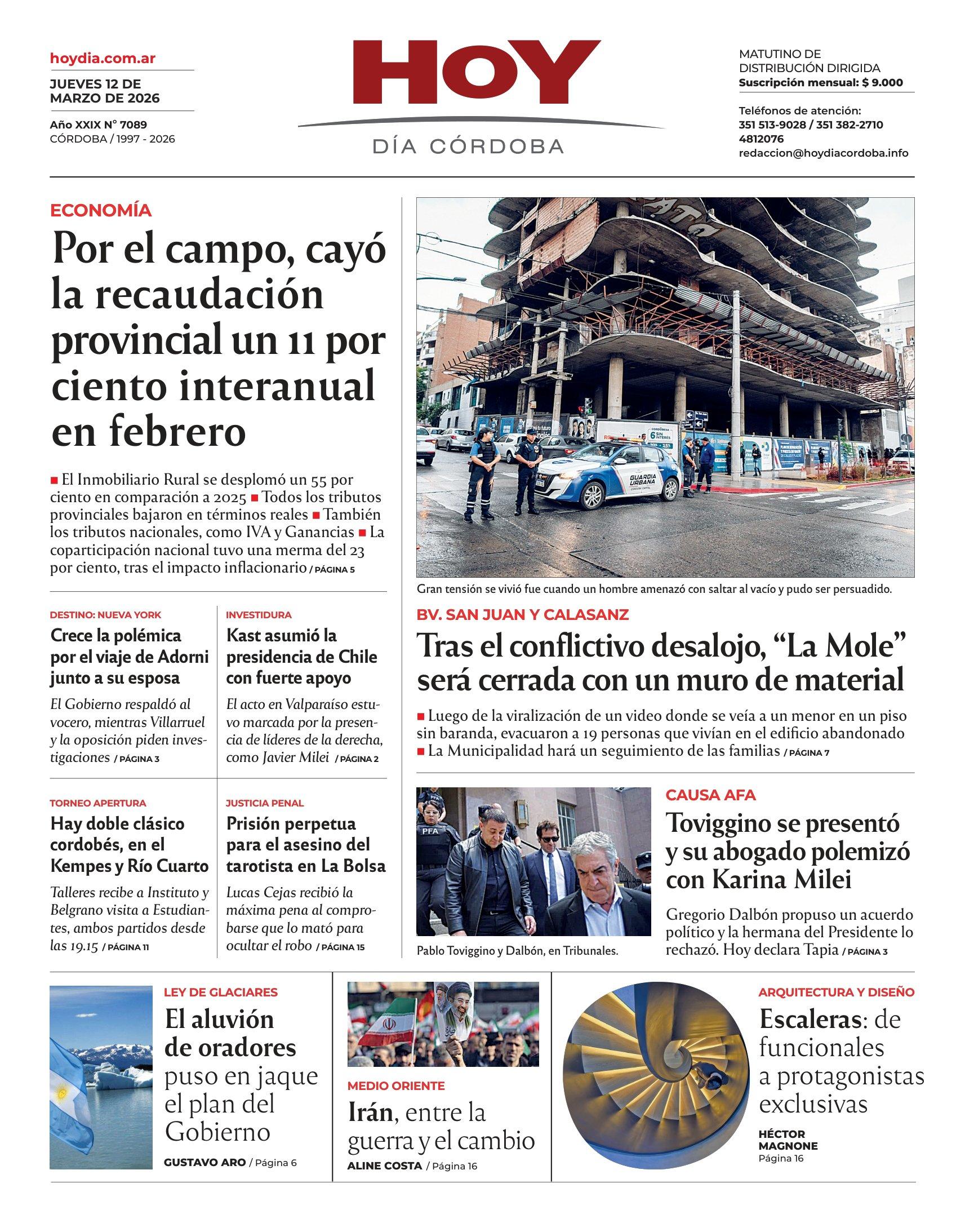Esta es la Tapa del Día jueves 12 de marzo del 2026 de nuestro Diario en su edición impresa.