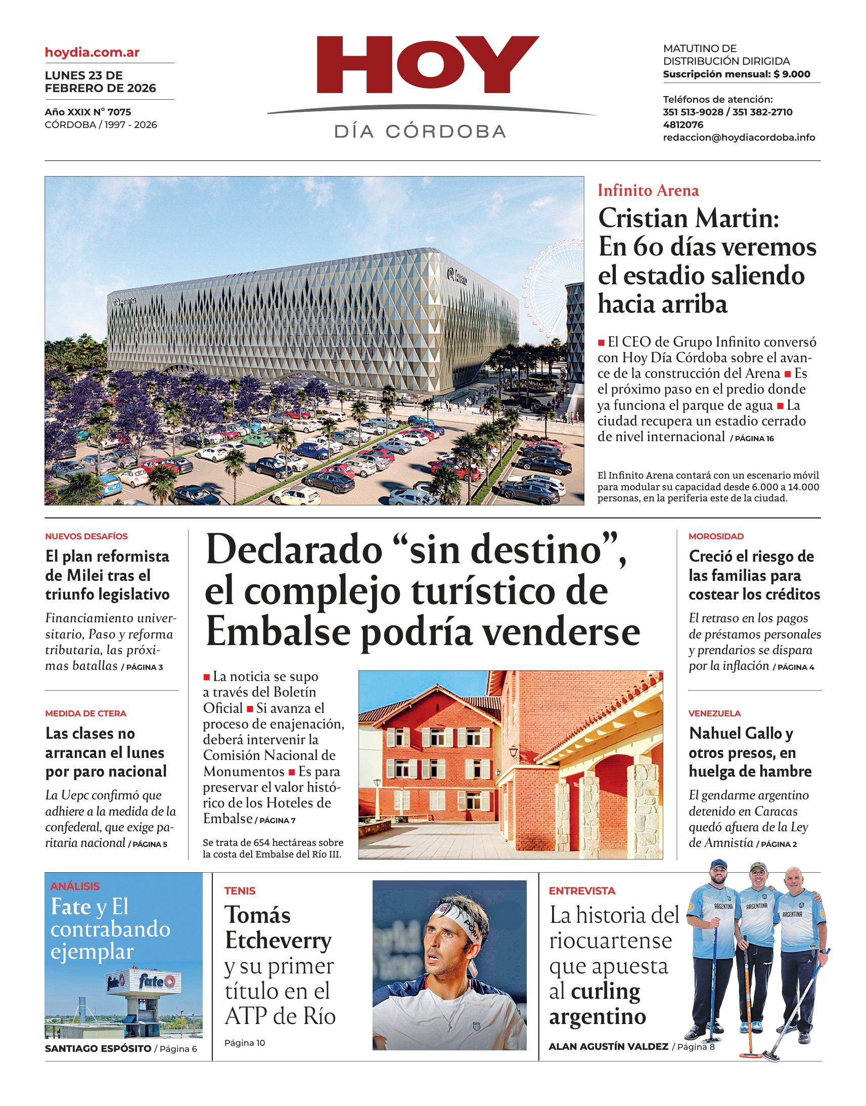 Esta es la Tapa del Día lunes 23 de febrero del 2026 de nuestro Diario en su edición impresa.