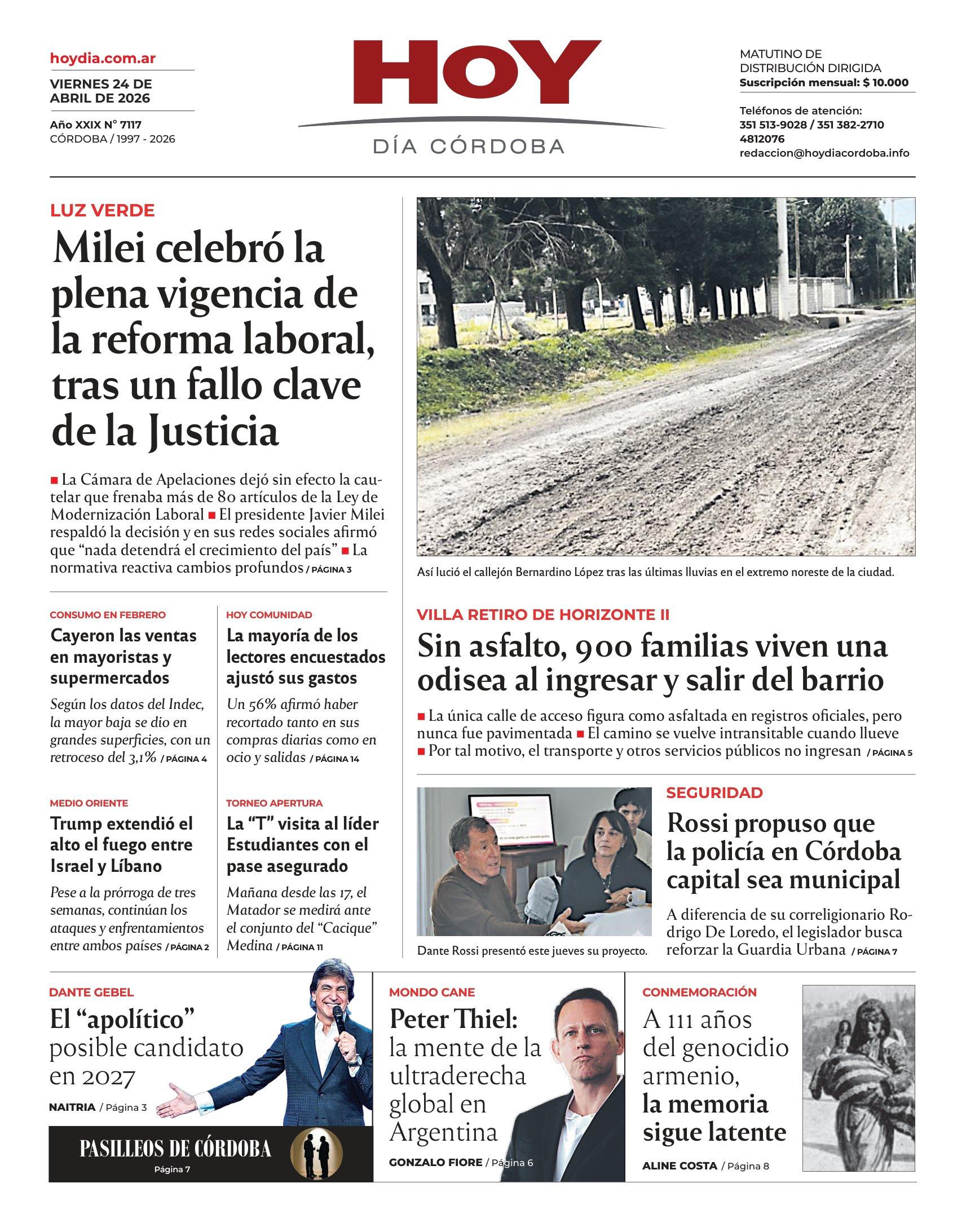 Esta es la Tapa del Día viernes 24 de abril del 2026 de nuestro Diario en su edición impresa.
