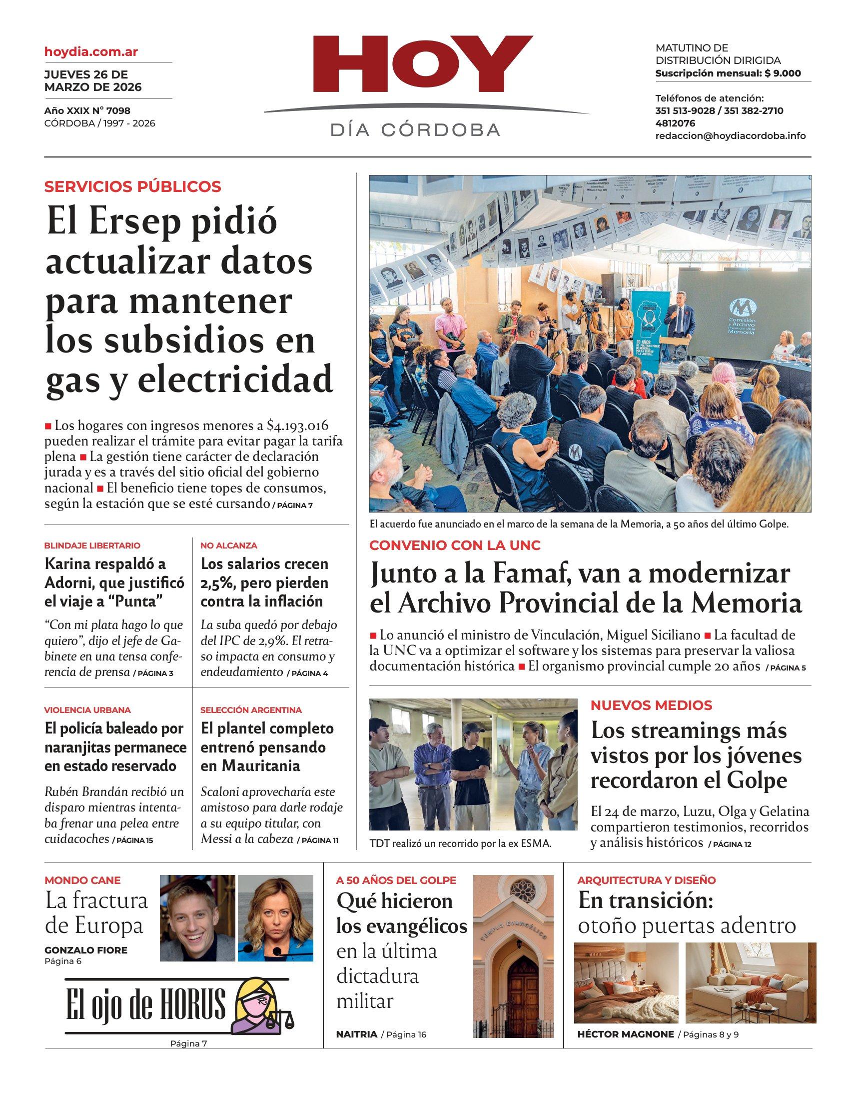 Esta es la Tapa del Día jueves 26 de marzo del 2026 de nuestro Diario en su edición impresa.
