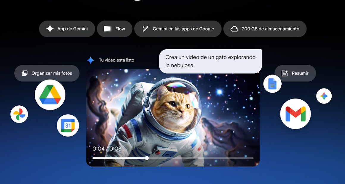 Además, los suscriptores contarán con mayor capacidad de análisis gracias a más funcionalidades de NotebookLM, ideal para transformar documentos de investigación o estudio en resúmenes, contenidos y material didáctico. Y a todo esto se suman 200 GB de almacenamiento en Google Fotos, Drive y Gmail.