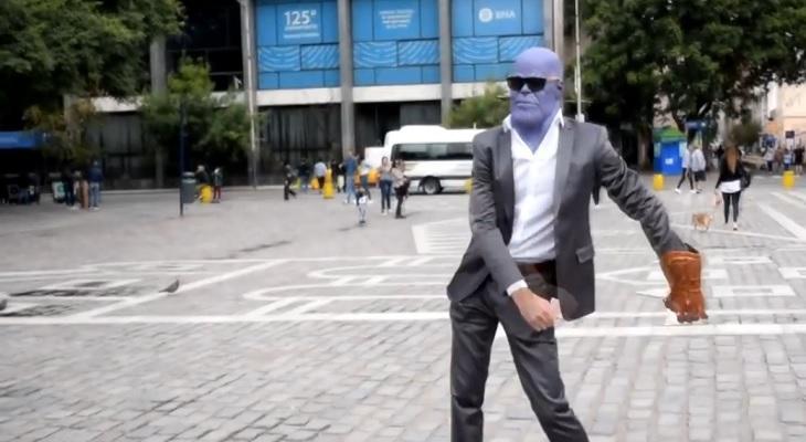 Un grupo de fanáticos de la película Avengers produjo un desopilante video con Thanos, el villano del film, en el centro de Córdoba.